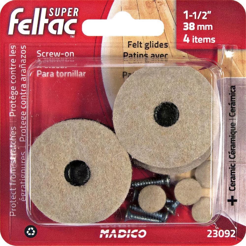 Heavy furniture can be moved easily with SUPER FELTAC felt pads on a thermoplastic rubber base. Soft and durable heavy-duty felt pads. Makes furniture easier to move. Protect all home floors, surfaces and furniture. Sold in sets of 4 items.