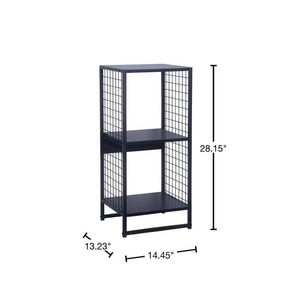 This attractive 2 cube wall unit adds modern organization to any space. This unique and stylish piece makes a stylish addition to any room while also providing storage options. Use any standard cube organizer bin in the shelves to keep items tucked away and out of sight, use the shelves without bins to display items, or both. This cube wall unit’s slim profile makes it great for a variety of applications. You could use it as a side or end table for living room furniture, a nightstand in the bedroom, a place to store toiletries and other items in the bathroom, and more. Wherever you have a need for a small storage solution, this cube unit will do the trick. The shelves are made of durable black metal wire mesh and attractive wood grain laminate, adding a modern mix of warm natural and industrial materials to any space. With such neutral colors and classic design, this piece is sure to fit in with a variety of decor styles for years to come.