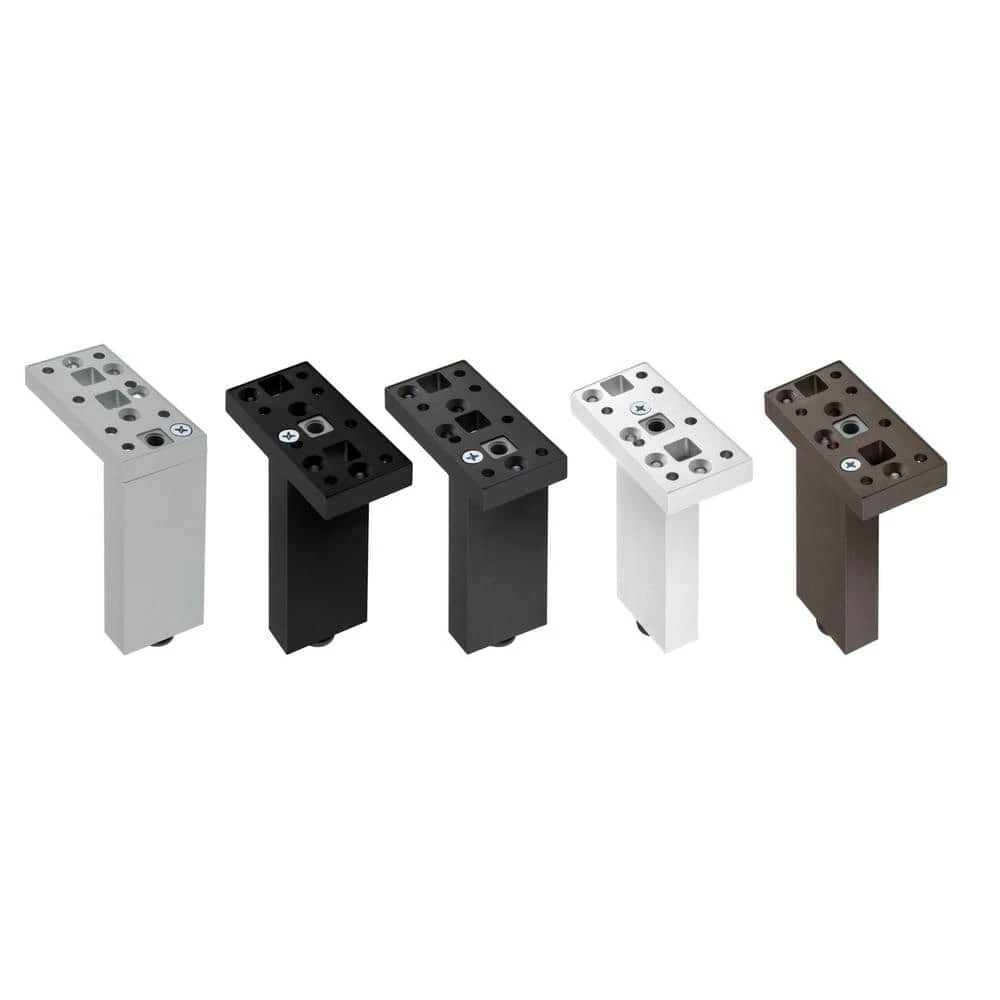 Modern elegant furniture leg with unique mounting plate that gives you 5 options to position the leg. Heavy-duty and adjustable. Available in 5 finishes and 7 heights. Easy to install.
