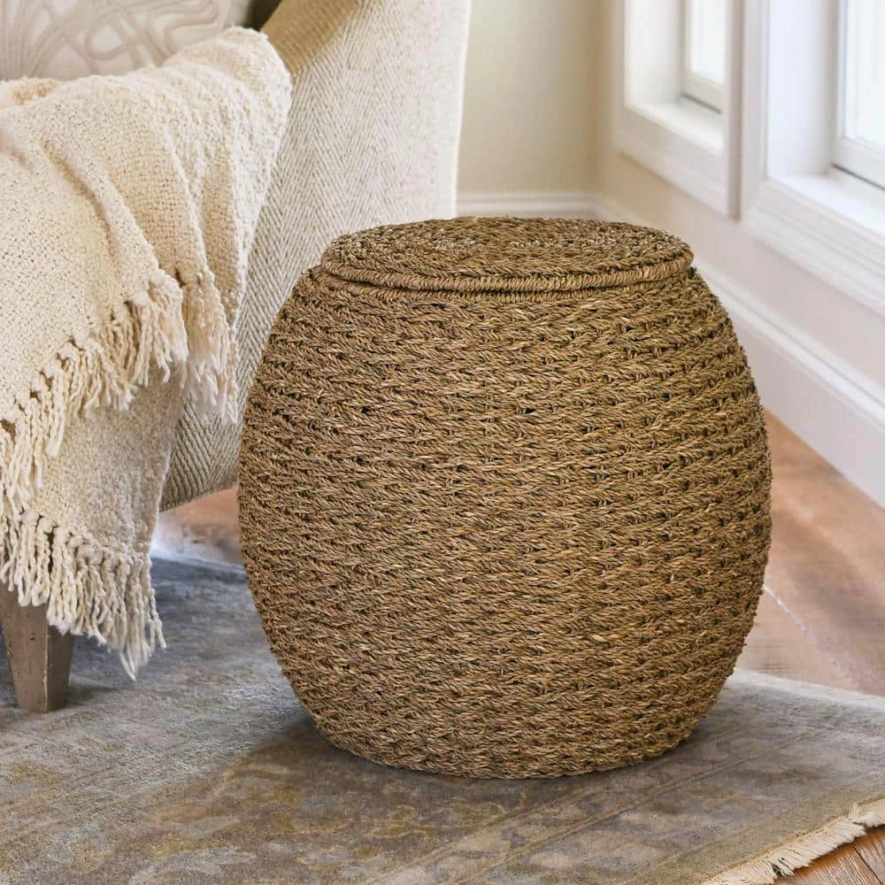 Introduce a bit of rustic flair to your home with this multipurpose basket side table. Its durability and chic appearance lend itself to a variety of potential uses around the contemporary home. While its main purpose is to be an elegant side table, it could also be used as a low stool or even a planter with the addition of a plastic liner. This basket side table has the right amount of bohemian inspiration and chic contemporary style that is perfect for use in the living room, bedroom or office. The pure natural basket has a tightly handwoven exterior made of natural seagrass wicker. A strong metal frame provides excellent support and stability. These high-quality and resilient materials make this side table ready for both outdoor and indoor use. This greater durability is also great for households with excitable pets! Due to its handmade qualities, size and color may vary slightly from one product to the next. This makes each basket table unique in its own way. The narrow, barrel profile fits snuggly next to seating and is just the right height for comfort. It is also super easy to clean with a damp cloth or hosed down outside. This basket side table is an excellent way to add a hint of functional bohemian decor to your home. The versatility of this piece is great for those who love transitional pieces that can be moved around and repurposed now and again.
