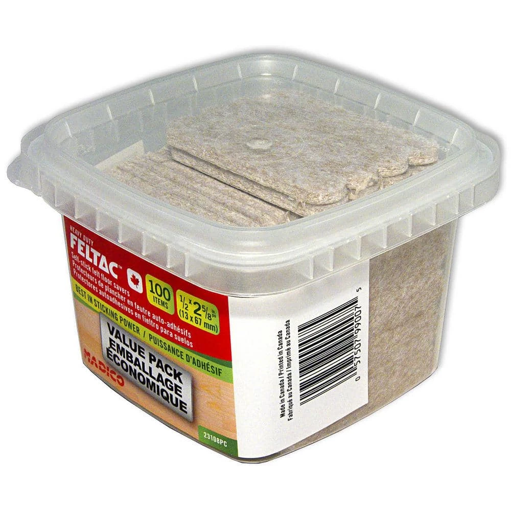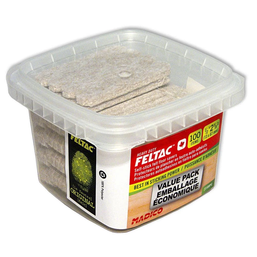 Feltac felt pads provide the best combination of softness, sticking power, durability, thickness, stability and color. The original, the best in floor protection. Sold in sets of 100 items.