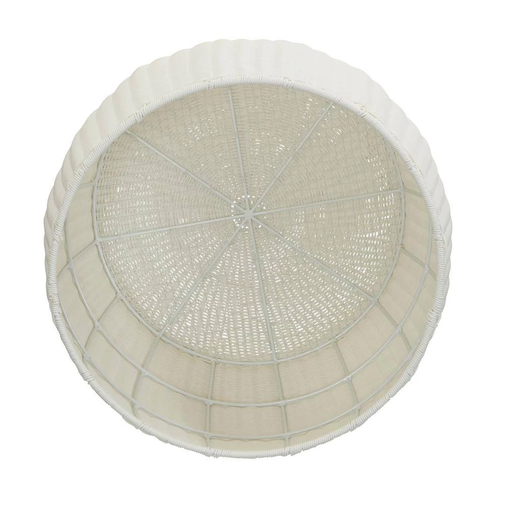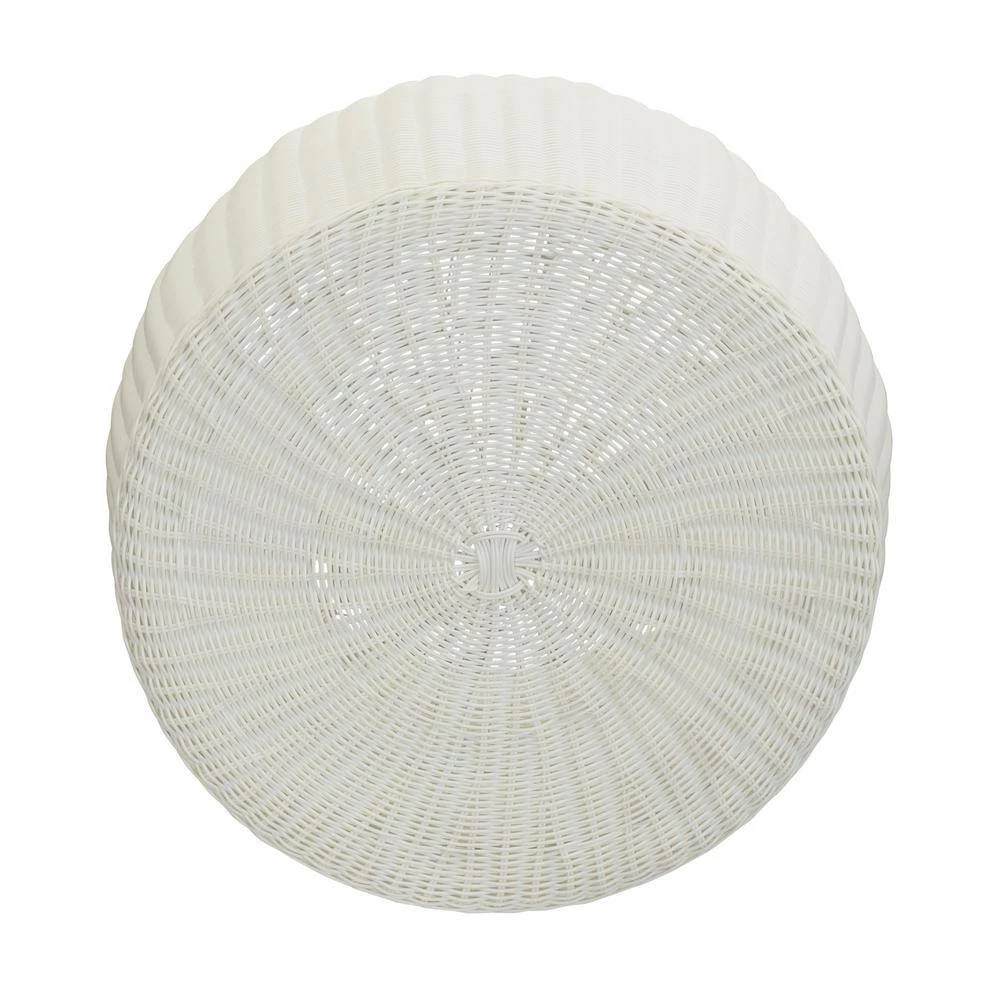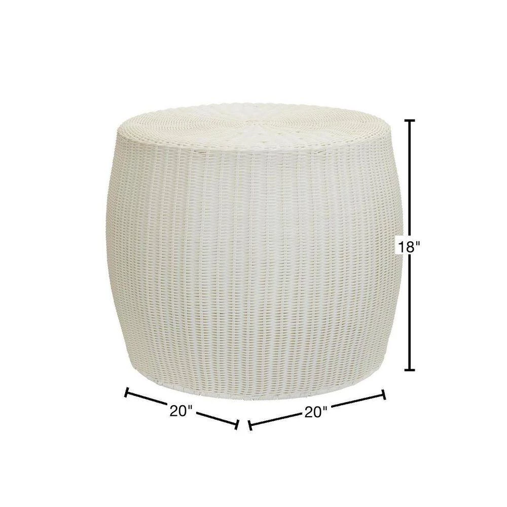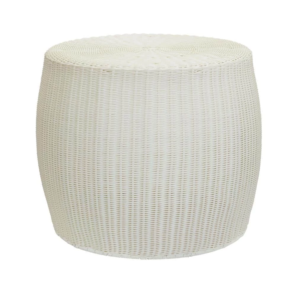 The white resin wicker side table is a stylish, functional and versatile addition to any room or covered outdoor setting. Standing 18 in. tall and measuring 20 in. Dia, this resin wicker accent piece makes a perfect plant stand, ottoman or end table for your patio, deck or living room. In addition, the table is hollow underneath and, when flipped upside down, can serve adequately as a fashionable storage wicker basket for blankets, pillows, toys or other loose items in need of a home. For added support and strength, the table is braced with a hidden metal frame to help preserve and maintain its signature shape and durability. While the table is built for indoor or outdoor settings, it is recommended to avoid extended exposure to harsh weather like heavy rain or snow. Doing so will preserve the life and allure of your resin table for years to come. If you do choose to display and use the table outdoors all year round, covered settings (covered patios, sunrooms, gazebos, etc.) are preferred. This lovely white resin wicker table comes as 1-solid piece and is ready for display the day it arrives at your home, with no assembly required.