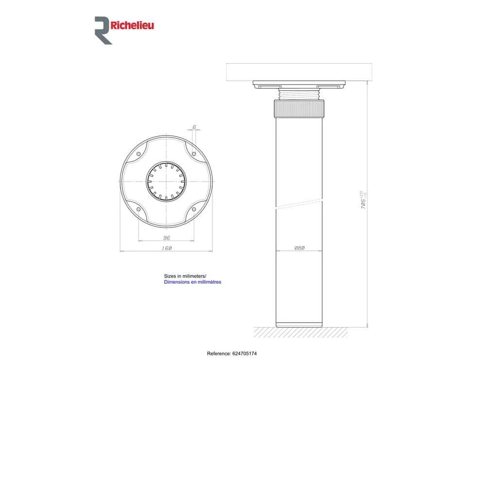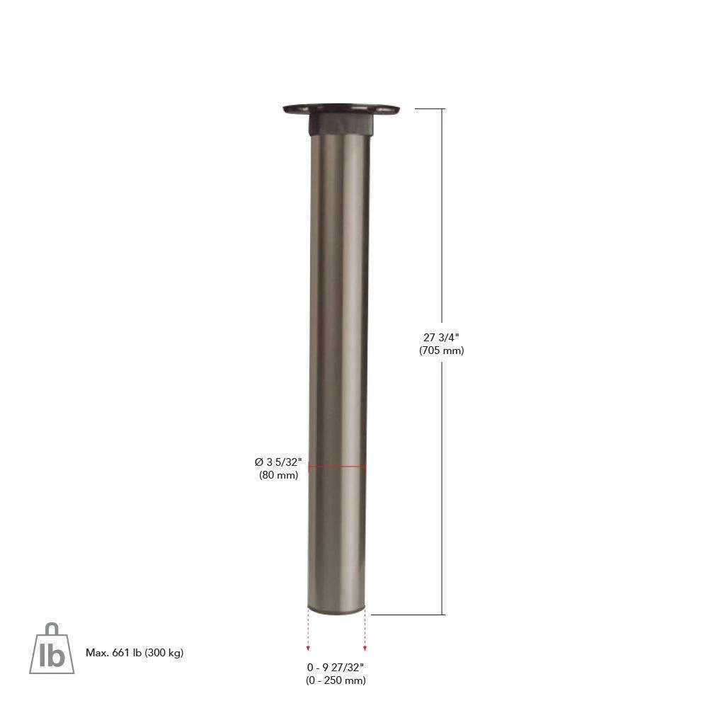 Round table leg with almost 10 in. (250 mm) of height adjustment. Heavy-duty weight capacity for challenging projects. Easy to install.
