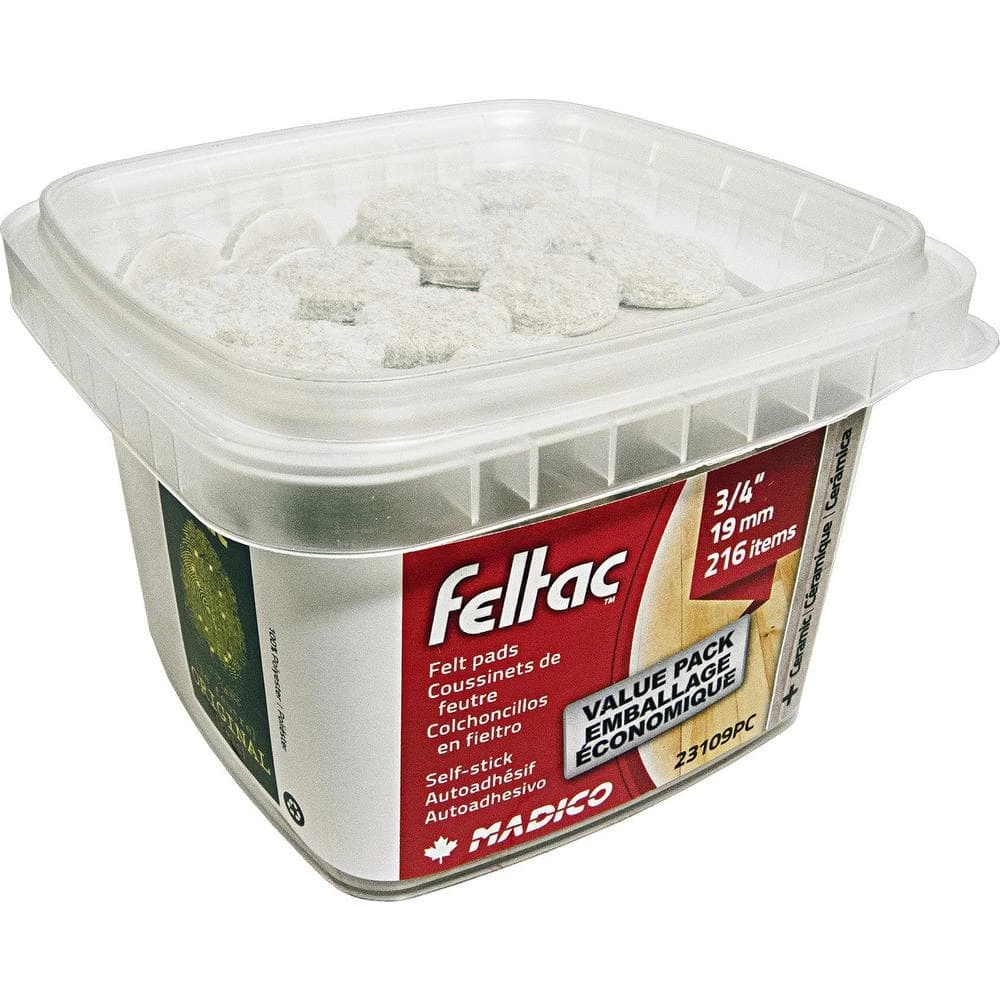 Feltac felt pads provide the best combination of softness, sticking power, durability, thickness, stability and color. The original, the best in floor protection. Sold in sets of 216 items.