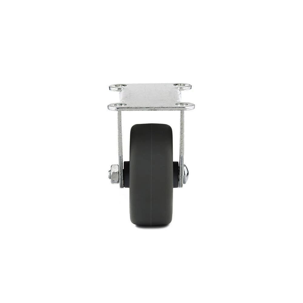 These heavy-duty casters are durable and designed for use in the most demanding environments. Non-marking rubber tread and corrosion-resistant zinc finish. Polypropylene rim resistant to nicks, scratches, stains, and deterioration. Thermoplastic rubber resistant to chemicals, caustics, oils, and wear.