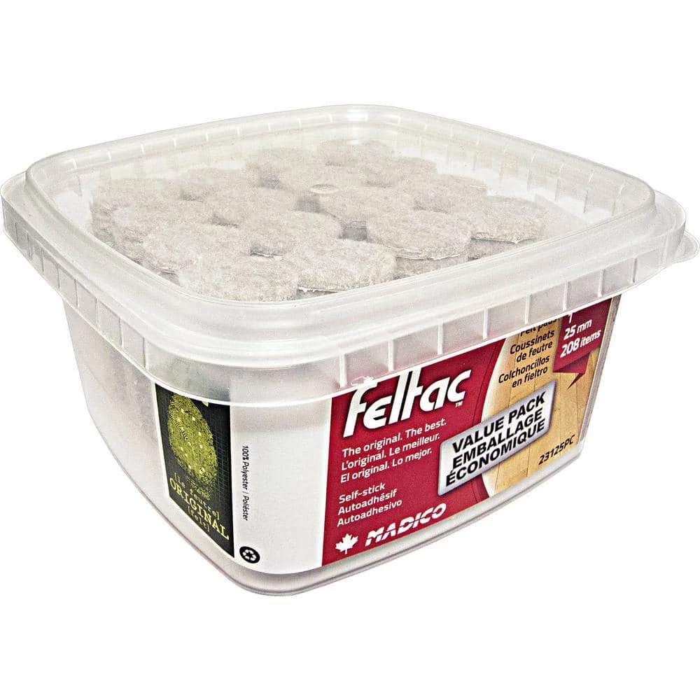 Feltac felt pads provide the best combination of softness, sticking power, durability, thickness, stability and color. The original, the best in floor protection. Sold in sets of 208 items.