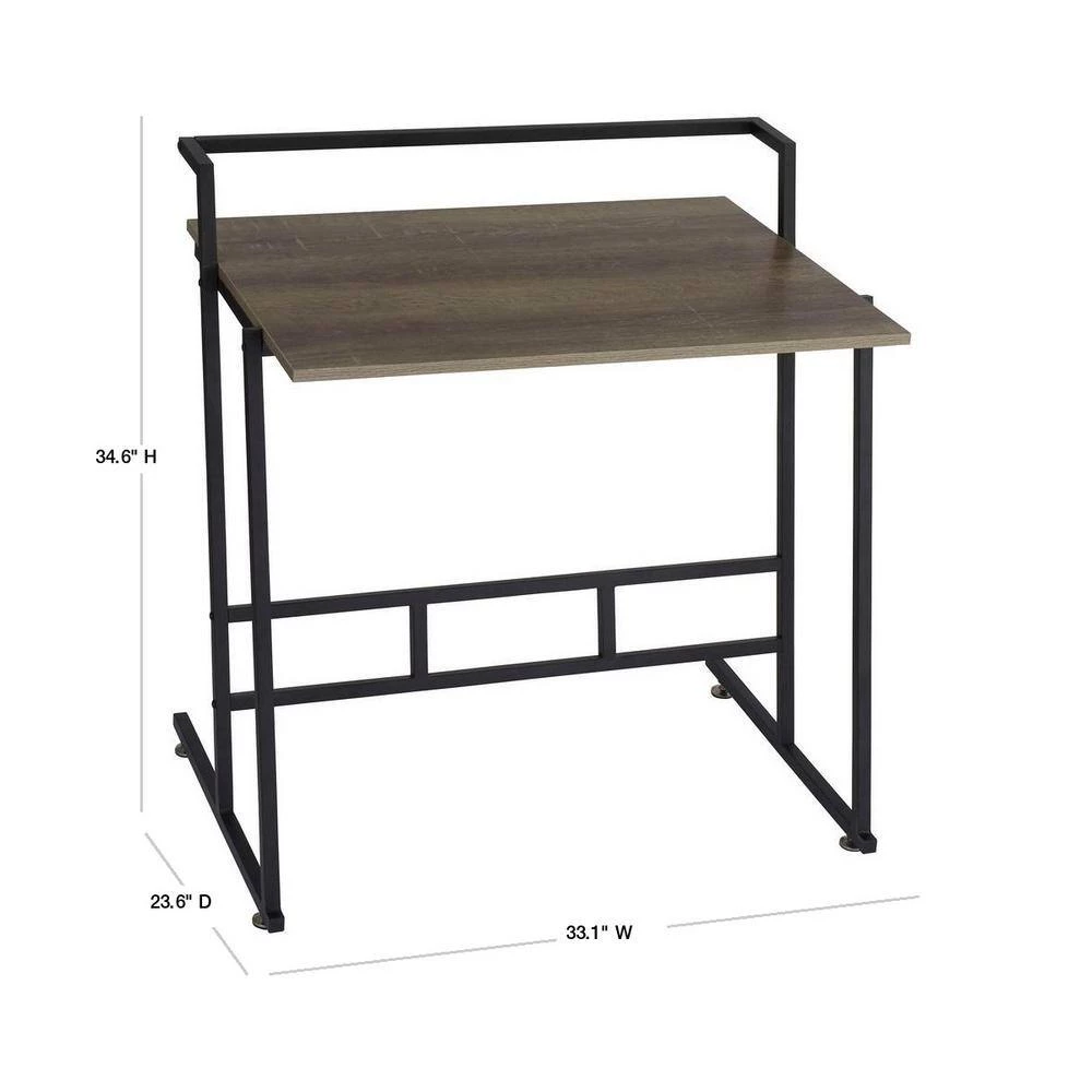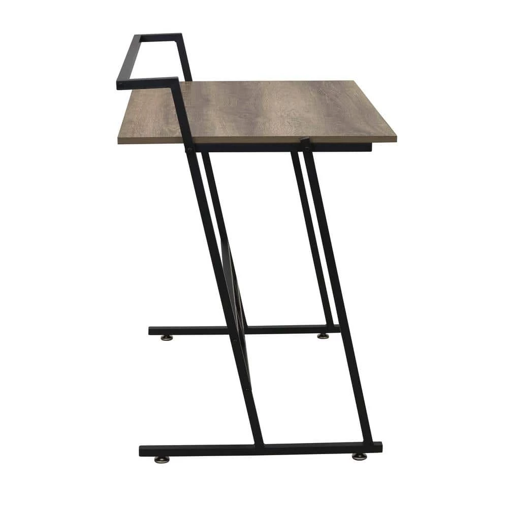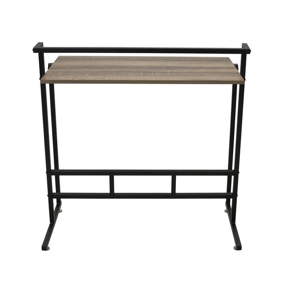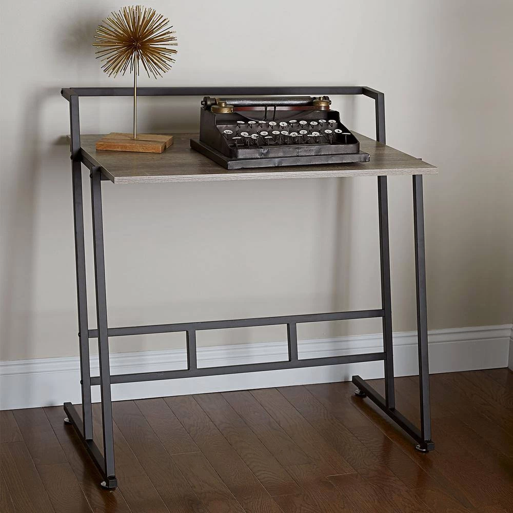 Household Essentials Ashwood Modular Desk is a charming desk with open design and an old-fashioned feel. It combines straight lines and open layout to maximize usable space and minimize visual clutter. This desk has a large smooth gray laminate work surface and sturdy black metal frame legs and back bracings. The desk is made sturdy by its slanted legs and full-depth feet. The rounded feet protect floors and can be adjusted to keep the desk level. With versatile layout that allows for many kinds of chairs, you can tailor your workspace to your minimizing clutter and maximizing workflow. The desk is 34.6 in. high x 33.1 in. wide x 23.6 in. deep and coordinates with the full Ashwood Collection.
