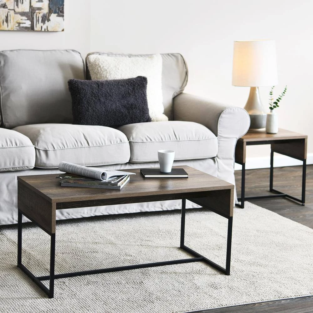 - Wood coffee table with metal frame