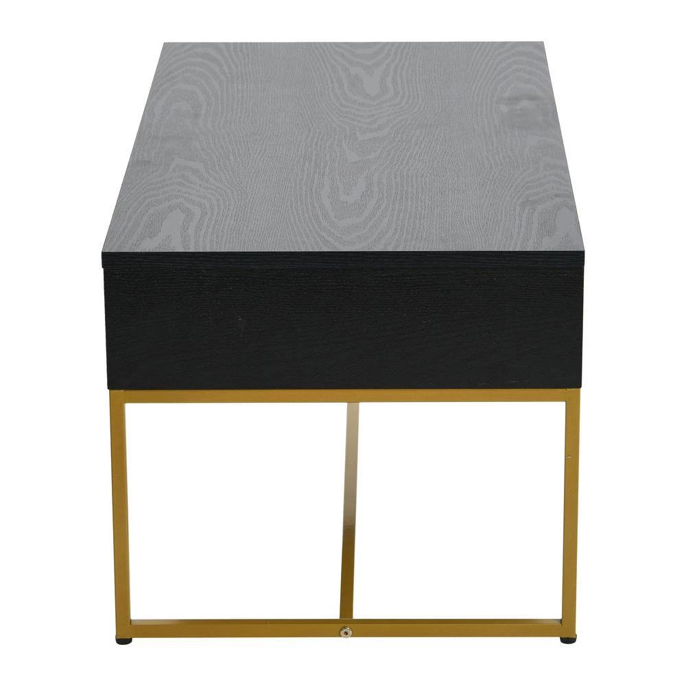 - This clean-lined coffee table features a contemporary wood tabletop with a unique wrap design, anchored by an elegant metal frame