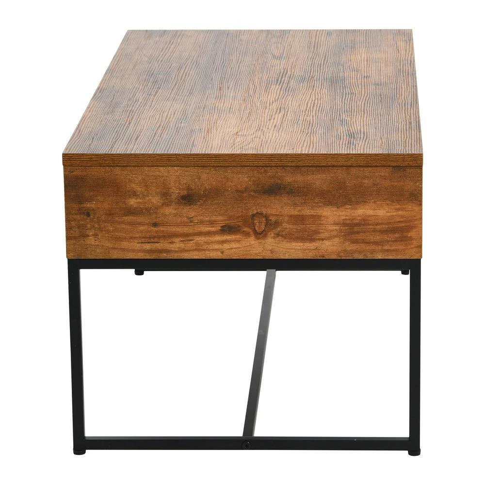 - Clean-lined coffee table features a contemporary wood tabletop with a unique wrap design, anchored by an elegant metal frame