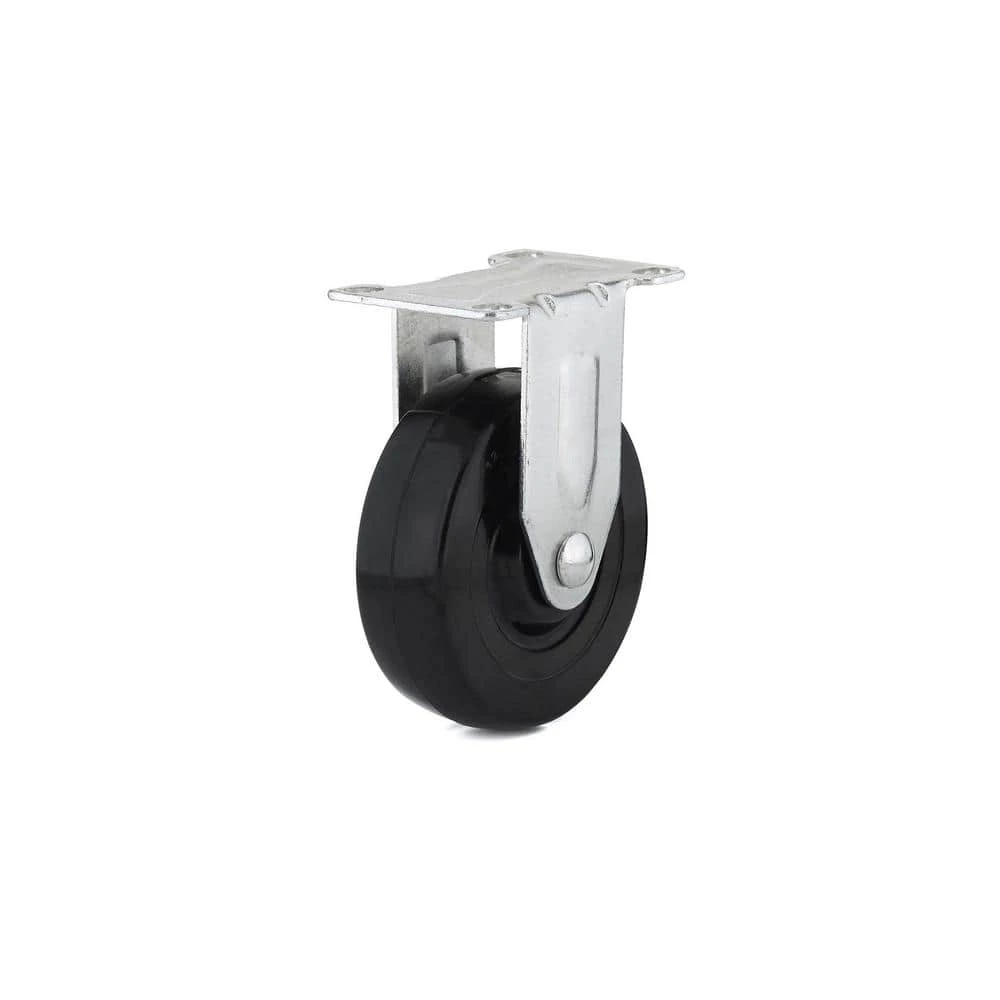 4 in. General-Duty Rubber Rigid Caster has corrosion-resistant zinc finish. The Soft tread combines with hard core for quiet movement and cushioned ride and the single row of hardened ball bearings in a large-diameter lubricated raceway makes the good quality of this product.