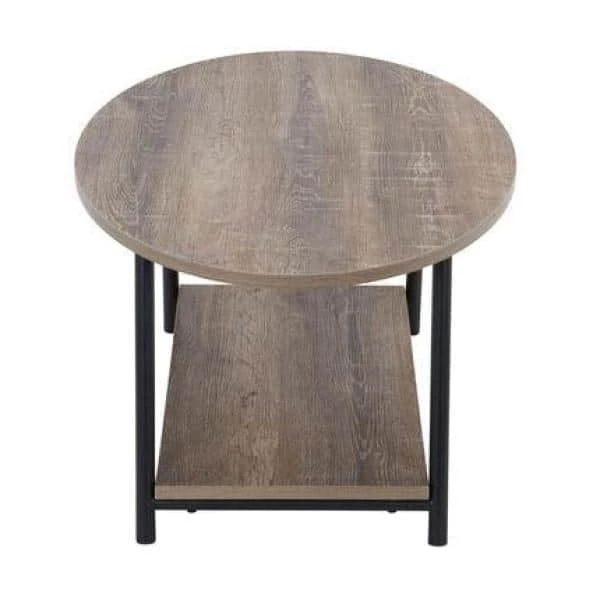 This modular coffee table is a perfect oval, low table. Large enough for several people to enjoy. It has a smooth, gray laminate top and black metal, open frame legs. The open frame keeps the table looking lightweight perfect for a smaller room. The legs intersect on the floor in the center of the table. This makes the table more stable while maintaining ample space for kneeling or sitting around it. This coffee table is stylish, minimalist, compact storage furniture at home, in the dorm, or at the office.