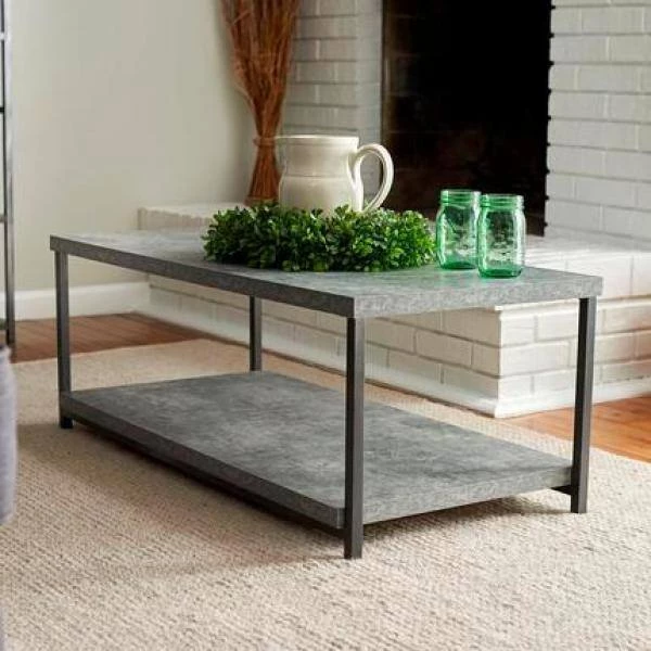 Enhance the look of your room with the Household Essentials Ashwood Coffee Table. This coffee table has a modern style, which makes it an aesthetically pleasing addition to your living space. It has a metal construction, making it perfect for adding modern features to your interior design. It has a shelf, which will ensure that your living space is clean. Made with a sturdy design, this coffee table will stay in great condition for a long time. Featuring a gray finish, it is a versatile choice for your room since it pairs well with any style.