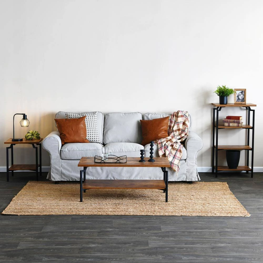 This timeless 2-tier, architectural coffee table will elevate any living space with its clean lines and contrasting hues. Display decorative accents, books, and small plants for an eye-catching pop of color, or leave bare as a sophisticated statement piece, perfect for a mid-day coffee break or casual evening cocktail hour. The versatile colors and subtle art deco influence will carry this table through any style transition from rustic and farmhouse to country and industrial. Coffee table is made from sustainable particle board and measures 43.31 W x 19.75 W x 19.00 H. Equipped with adjustable feet to stabilize and protect floors.