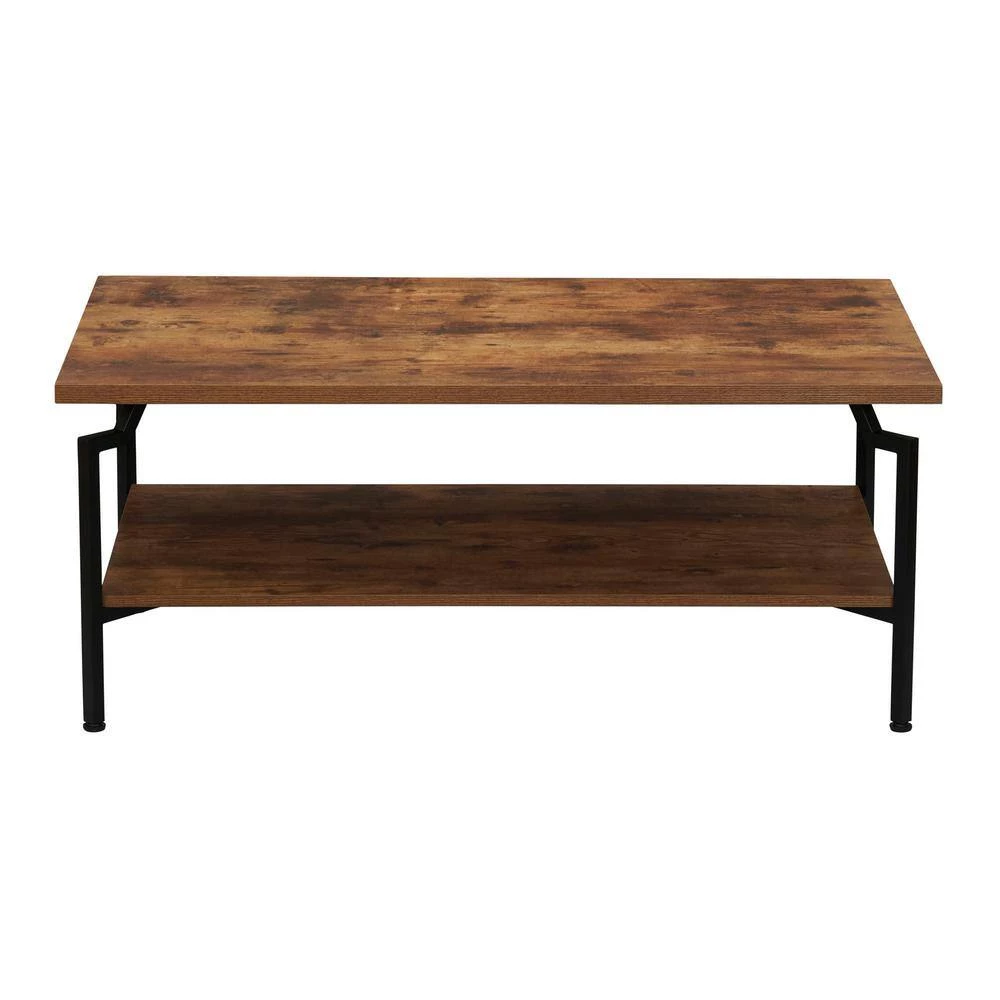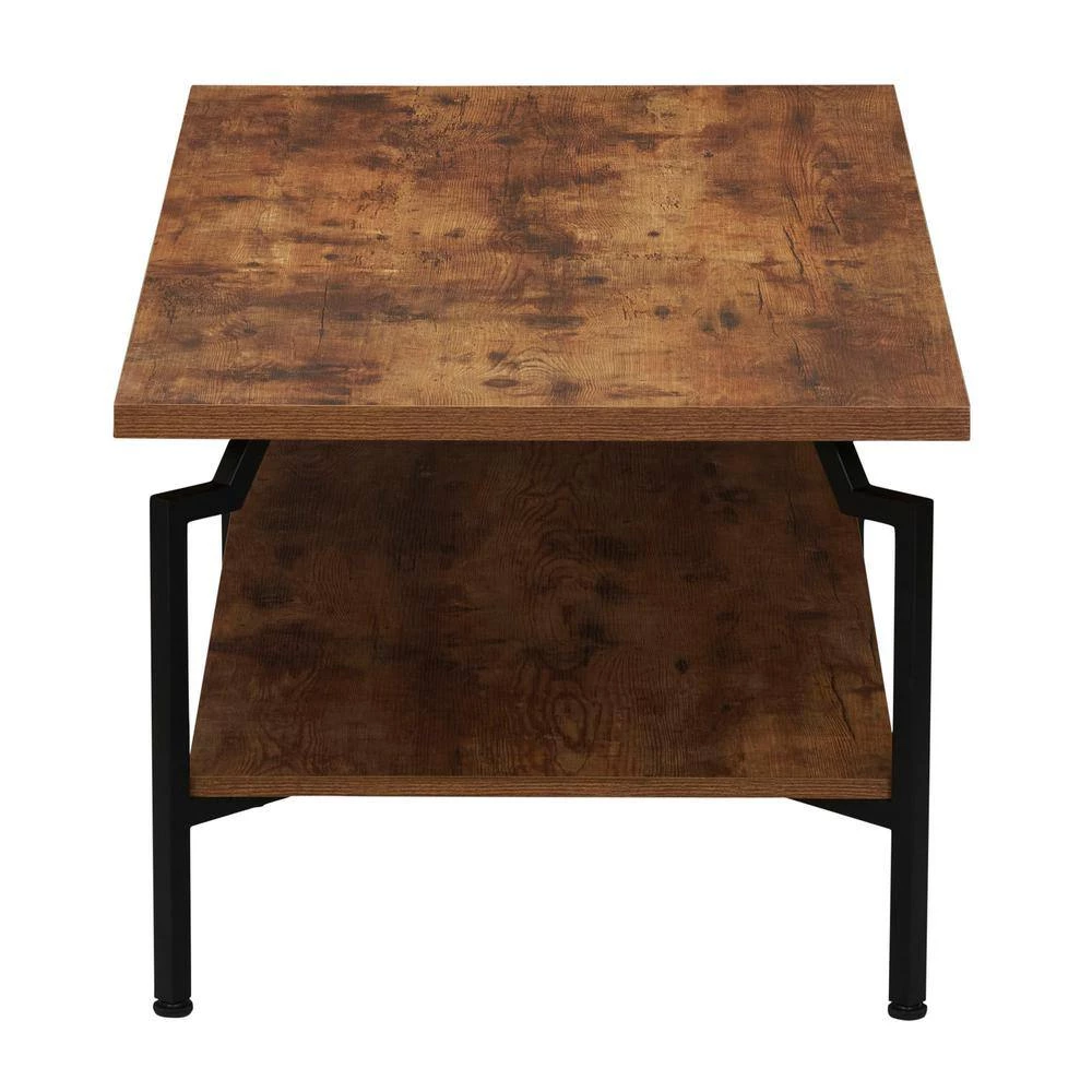 - This 2-tier art deco inspired coffee table showcases a sleek, rectangular tabletop in a rustic hickory finish and a stylish black brushed metal frame