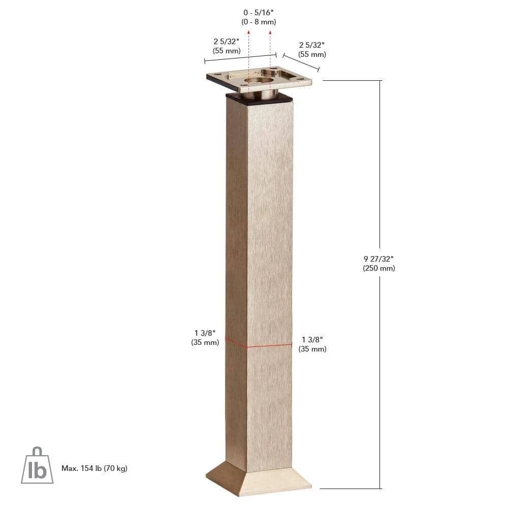 Add a vintage look to your furniture, closets, and case goods. Square legs are available in 3 heights and 3 finishes. Adjustable and easy to install.