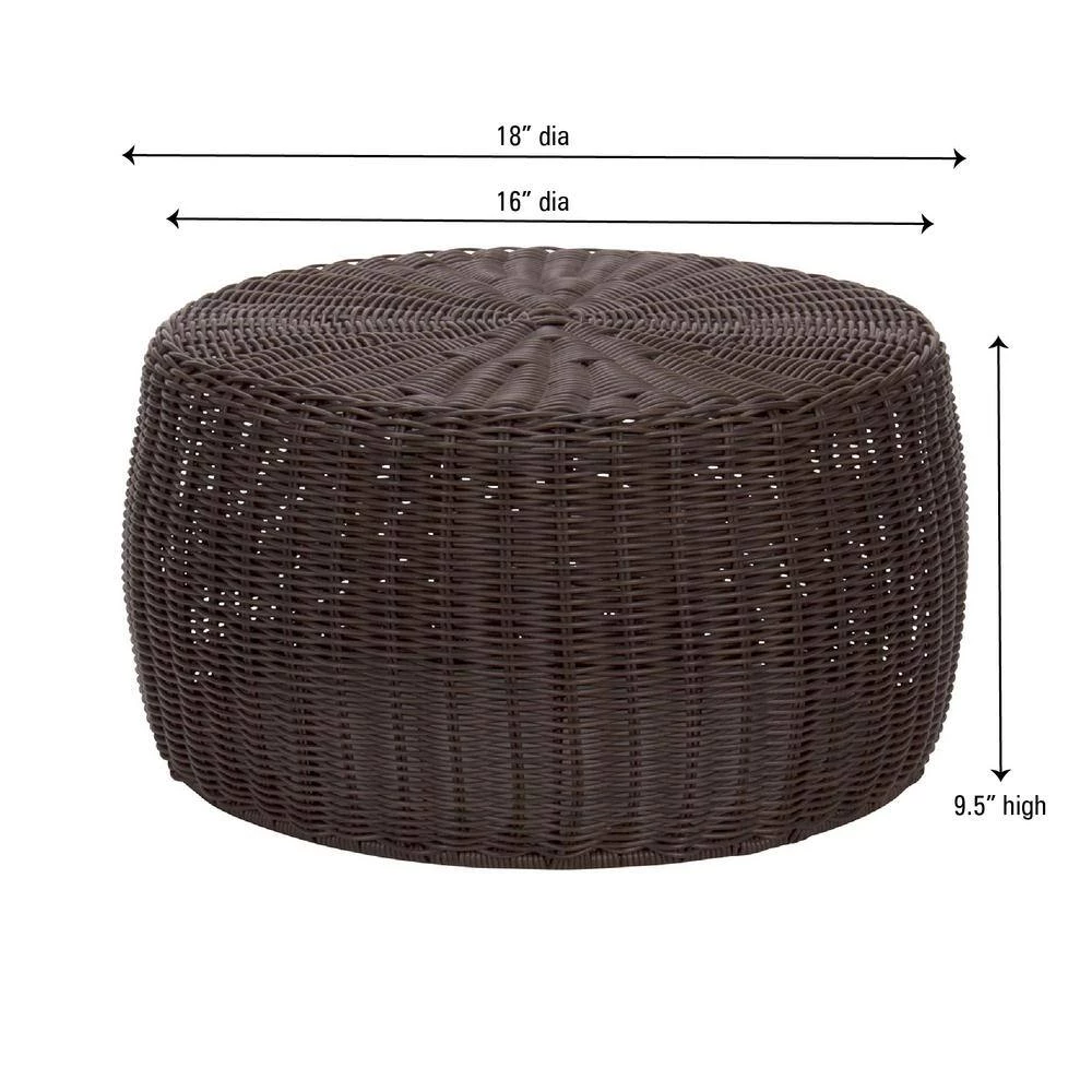 HOUSEHOLD ESSENTIALS Resin Wicker Low Table is really a low table. It is just about a foot high, and perfect for lounge spaces. It works wonderfully as a foot stool or even a low seat. The sturdy, resilient wicker is smooth and weather resistant, so it works well in transitional spaces. Perfect for 3-season rooms, porches, and covered patios. It can even be a simple accent to your living room for eating around the coffee table. With a sturdy metal frame and sturdy resin wicker, it’s the right piece for an active household. It can even be turned upside down and used as stylish storage-it barrel shape makes a very attractive basket. Enjoy beautiful resin wicker in your home, indoors and out, with this low barrel table.