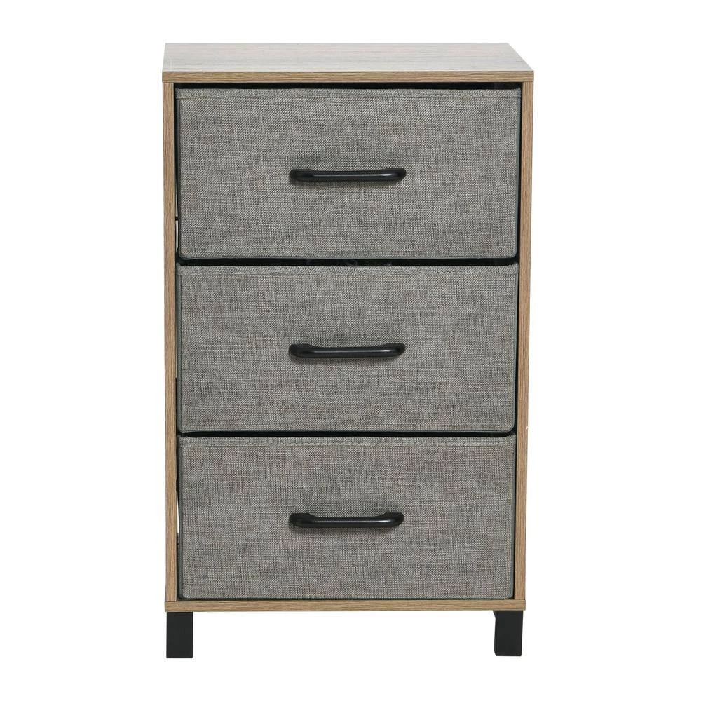 This 3-drawer dresser is a charming storage option that can help organize and pull together any room of your home. The dresser will introduce a splash of style while adding compact storage. This night stand is made of a sturdy frame, lined with an attractive wood laminate. This neutral tone-matches perfectly with the drawers. These drawers are lined with a soft yet durable fabric, and each comes with a convenient handle. The frame is kept up and off the ground with the strong metal feet as well. Lightweight and narrow, this piece is a great option for individuals with smaller living spaces such as apartments, dorms and townhouses. The compact design allows this to fit nicely into corners, next to the couch or other furniture. A cross wire backing not only keeps the drawers from falling out the back, but it also cuts down on the piece’s weight. To make moving this piece even easier, the drawers can be folded for storage. The cozy yet simplistic design of this dresser gives it a wide range of functionality. It can be used in the bathroom as a small vanity table, in an office space for extra desk storage or in the entryway to keep your keys and other out-the-door essentials, organize clothing accessories, reading material, linens and more with this 3-drawer dresser. Its compact design and attractive style make it a delightful addition to your collection of furniture.
