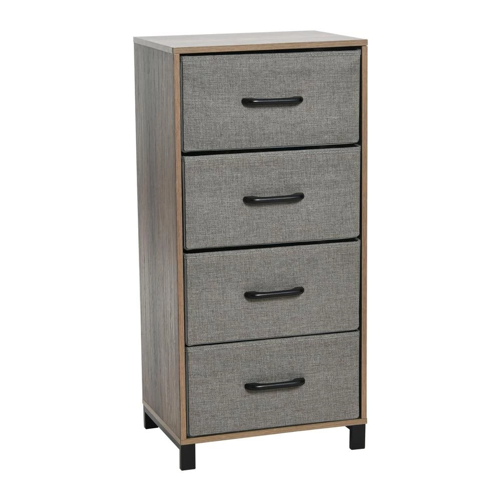 This 4-drawer dresser is a charming storage option that can help organize and pull together any room of your home. The dresser will introduce a splash of style while adding compact storage. This night stand is made of a sturdy frame, lined with an attractive wood laminate. This neutral tone-matches perfectly with the drawers. These drawers are lined with a soft yet durable fabric, and each comes with a convenient handle. The frame is kept up and off the ground with the strong metal feet as well. Lightweight and narrow, this piece is a great option for individuals with smaller living spaces such as apartments, dorms and townhouses. The compact design allows this to fit nicely into corners, next to the couch or other furniture. A cross wire backing not only keeps the drawers from falling out the back, but it also cuts down on the piece’s weight. To make moving this piece even easier, the drawers can be folded for storage. The cozy yet simplistic design of this dresser gives it a wide range of functionality. It can be used in the bathroom as a small vanity table, in an office space for extra desk storage or in the entryway to keep your keys and other out-the-door essentials, organize clothing accessories, reading material, linens and more with this 3-drawer dresser. Its compact design and attractive style make it a delightful addition to your collection of furniture.