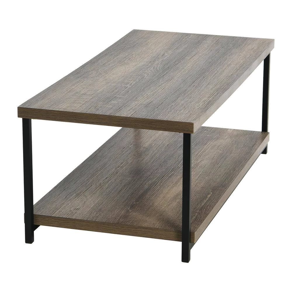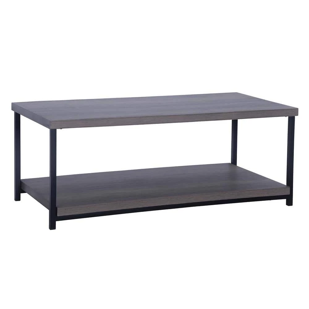 For a low-profile yet stylish addition to your living room, look no further than this modern rustic coffee table. This wide coffee table is a member of the Household Essentials Coastal Oak Collection that provides elegant and durable furniture pieces for use in any room. This modern coffee table accomplishes a chic modern design with its smooth top and sleek frame. This coffee table has luxurious faux wood laminate shelving for an on-trend look without the weight. The minimalist steel frame fosters a strong construction, promising to hold up to many years of watch parties, family get-togethers and football games. Its wide top offers plenty of space for impromptu snack buffets or a few pieces of decor. The lower shelf also provides additional space to store blankets, house shoes, books and much more. This versatile coffee table could also be used as a work table, entertainment center or even a bedroom. storage bench. Assembling this coffee table is super easy, and its minimalist profile would be a space-saving wonder for a new apartment or townhouse. The Scandinavian design pairs well with any pre-existing room layout, making this calm color coffee table a great choice for those struggling to find matching furniture pieces.