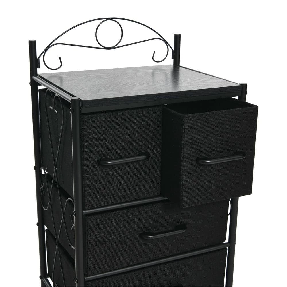 This storage tower is a practical organization solution for any space. The tower comes with 2 medium drawers and 2 large drawers that can be rearranged in the tower to create a variety of looks. Aside from the top 2-drawers, the lower drawers can be placed in any order. The tower’s frame is made of sturdy black metal with decorative flourishes for a sophisticated touch. On top of the drawers is a wood laminate shelf in a ashwood finish for additional storage space. The drawers come in classic light gray colors to match the warm complementary ashwood wood laminate. Each drawer has a durable black plastic handle that coordinates with the black metal frame. Comes ready to assemble and is easy to put together. Includes anti-tipping hardware.